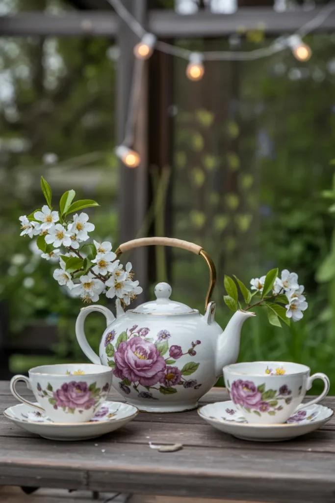 This style feels natural and relaxed. I like mixing different teacups instead of matching everything.