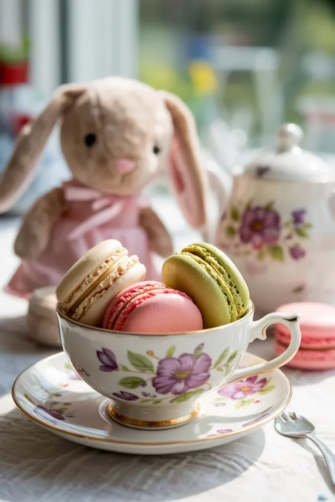 Kids enjoy easy-to-hold snacks like mini sandwiches and macarons. Complicated setups don’t really matter to them.