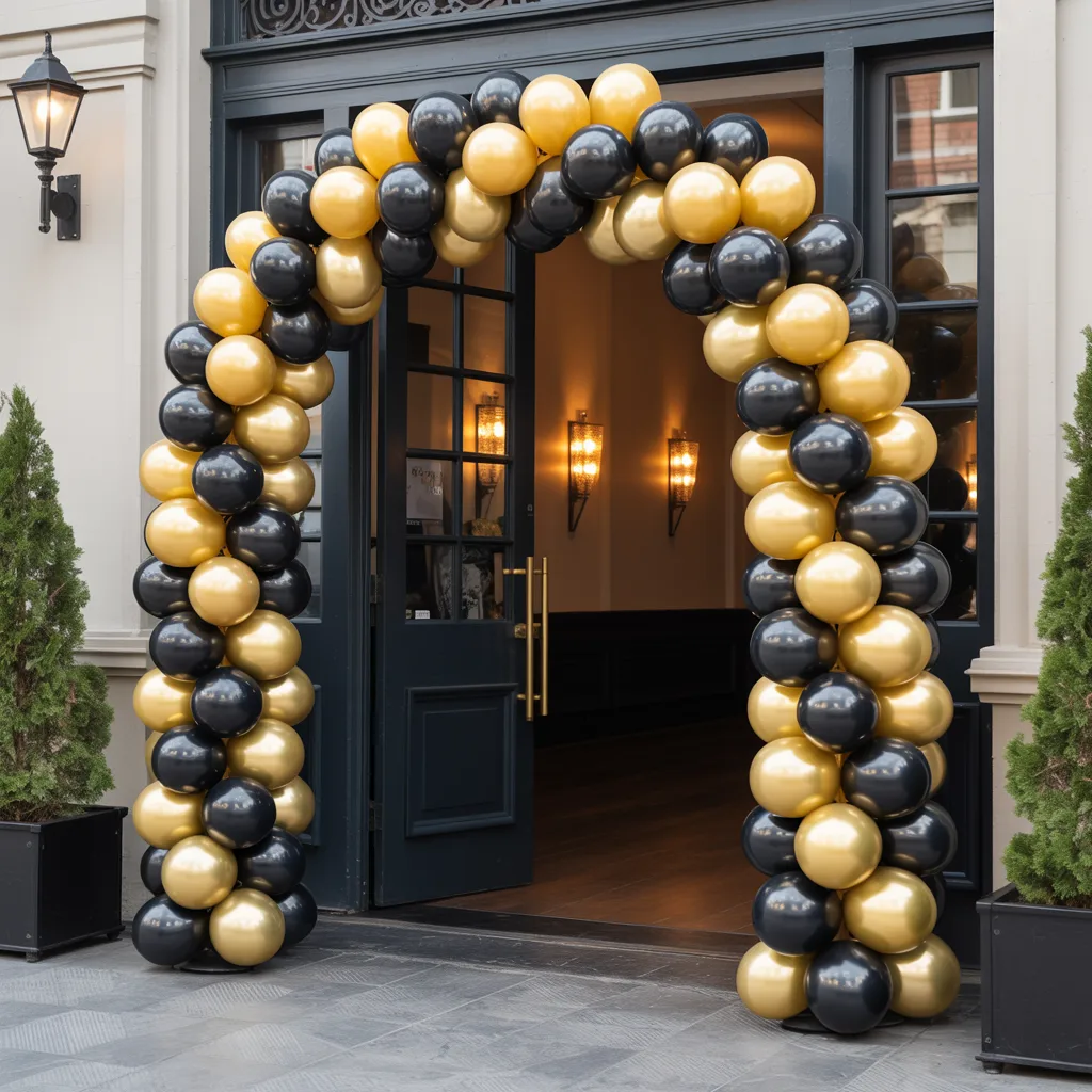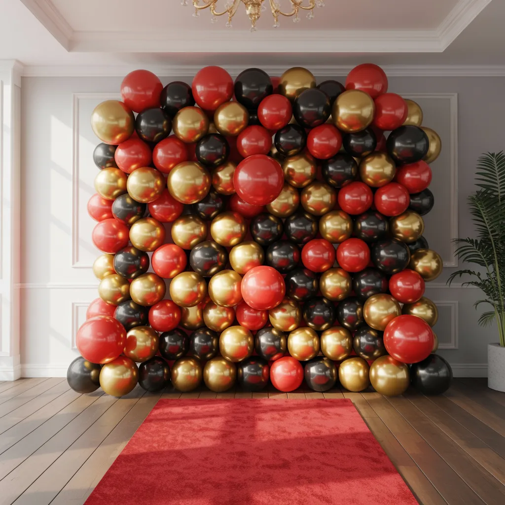 This is a bold setup that works best for evening parties. The layered balloons create depth and visual impact.