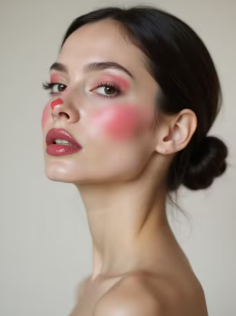 Dolly clown makeup uses rosy blush placed high and blended toward the temples. Cream blush creates a soft and lifted look.