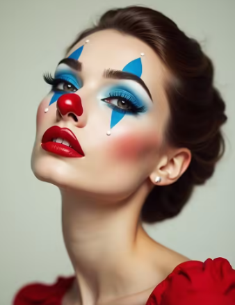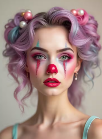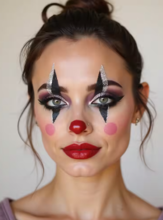 The goal is not to look scary but to stand out. With the right shapes, colors, and shine, clown makeup becomes stylish, expressive, and full of personality.