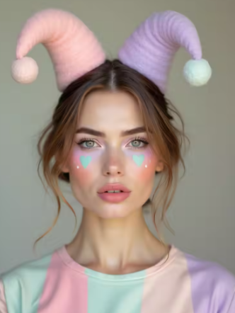 This look celebrates joy and exaggeration. It feels lively, sweet, and full of energy.