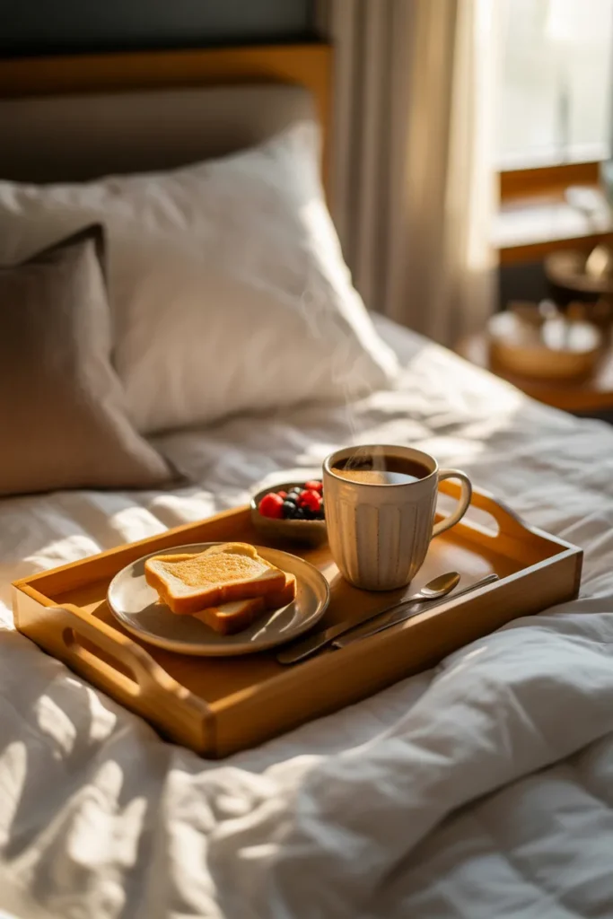 Starting his day with breakfast in bed adds a warm and thoughtful touch. It shows care and effort in a simple, loving way. Even small morning gestures can set a positive tone for the day.