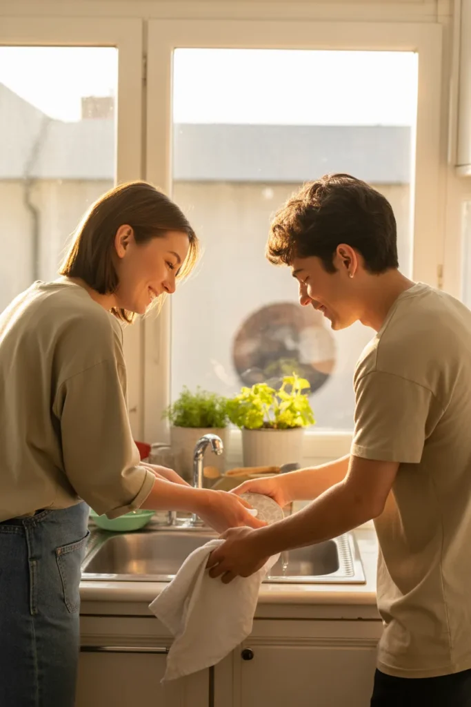 A balanced home creates a balanced relationship. Sharing responsibilities shows teamwork and respect.